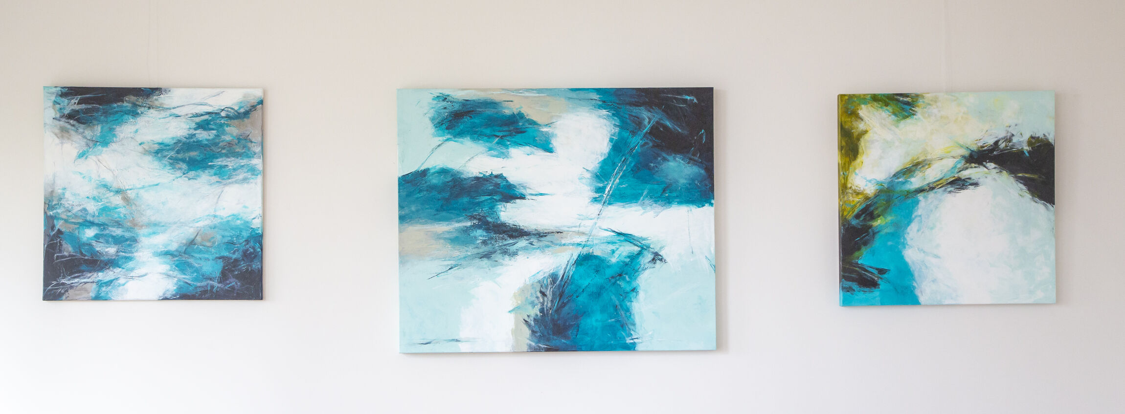 Nach der Kunstausstellung "Licht und Farbe" von Udo Becker mit Fotografien ist nun eine Ausstellung von Claudia Raabe mit abstrakten Acrylbildern zu sehen. Formen, Farben und Strukturen geben den Bildern von Claudia Raabe ihre Aussage und rufen im Betrachten des Bildes zu einem inneren Dialog auf. Bei längerem Hinsehen ensteht eine Dreidimensionalität.