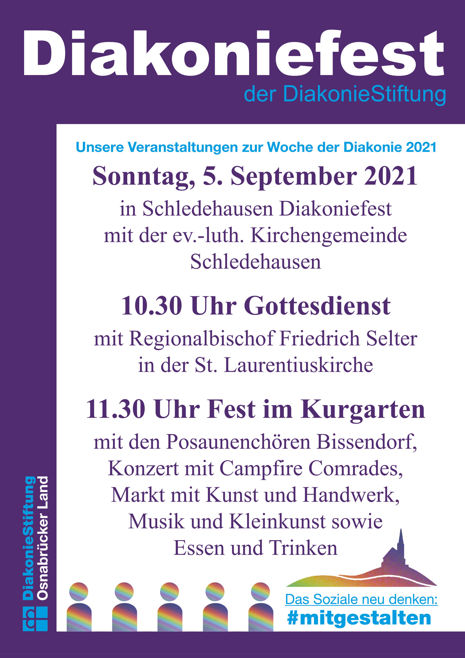 Gegen 11.30 Uhr werden die Gäste im Kurgarten Schledehausen von den vereinigten Posaunenchören Bissendorf begrüßt. Auf der Bühne, im Kurgarten und in der Kirche gibt es Musik, Kleinkunst, Unterhaltung, Informationen zur Stiftungsarbeit, Kirchenführungen, Essen und Trinken. Auf dem Markt von Kunst und Handwerk präsentieren Künstler*innen ihre Exponate und spenden den Erlös zugunsten der DiakonieStiftung. Um 13 Uhr gibt die Band Campfire Comrades ein Konzert mit einem Mix aus Rock, Oldies und Countries.